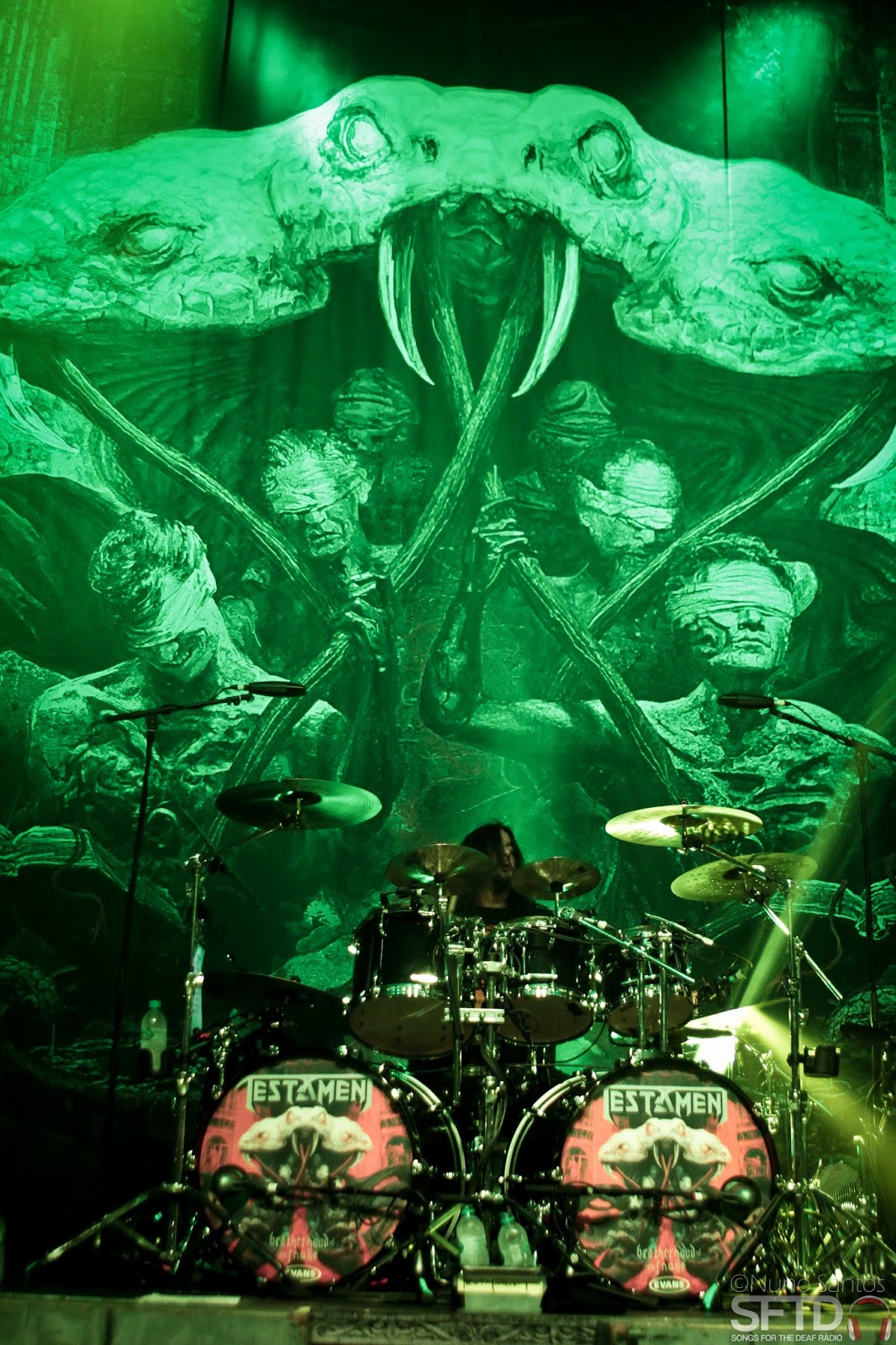 O histórico grupo libertou o seu thrash metal com o tema do novo álbum ‘Brotherhood Of The Snake’ e imediatamente surgiram headbanging, crowd surfing e muito mosh no circle pit. Apesar de terem tido o som um furos abaixo das outras bandas da noite, não tiveram dificuldades em conquistar um público muito receptivo e interactivo com a banda, recebendo os temas novos e os antigos com o mesmo entusiasmo, fossem eles oriundos dos primeiros álbuns The Legacy e The New Order ou dos mais recentes The Formation Of Damnation, Dark Roots Of Earth e Brotherhood Of The Snake.